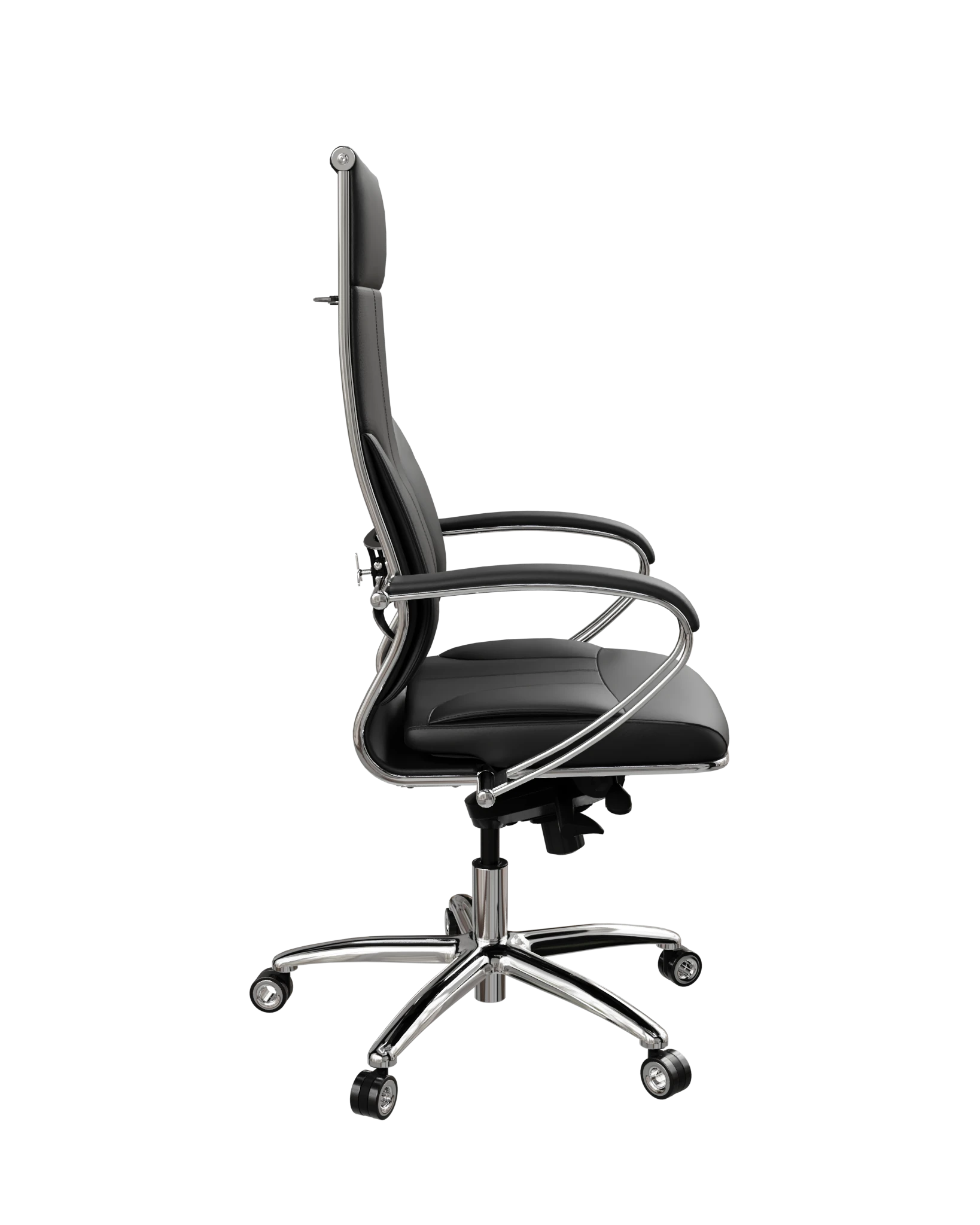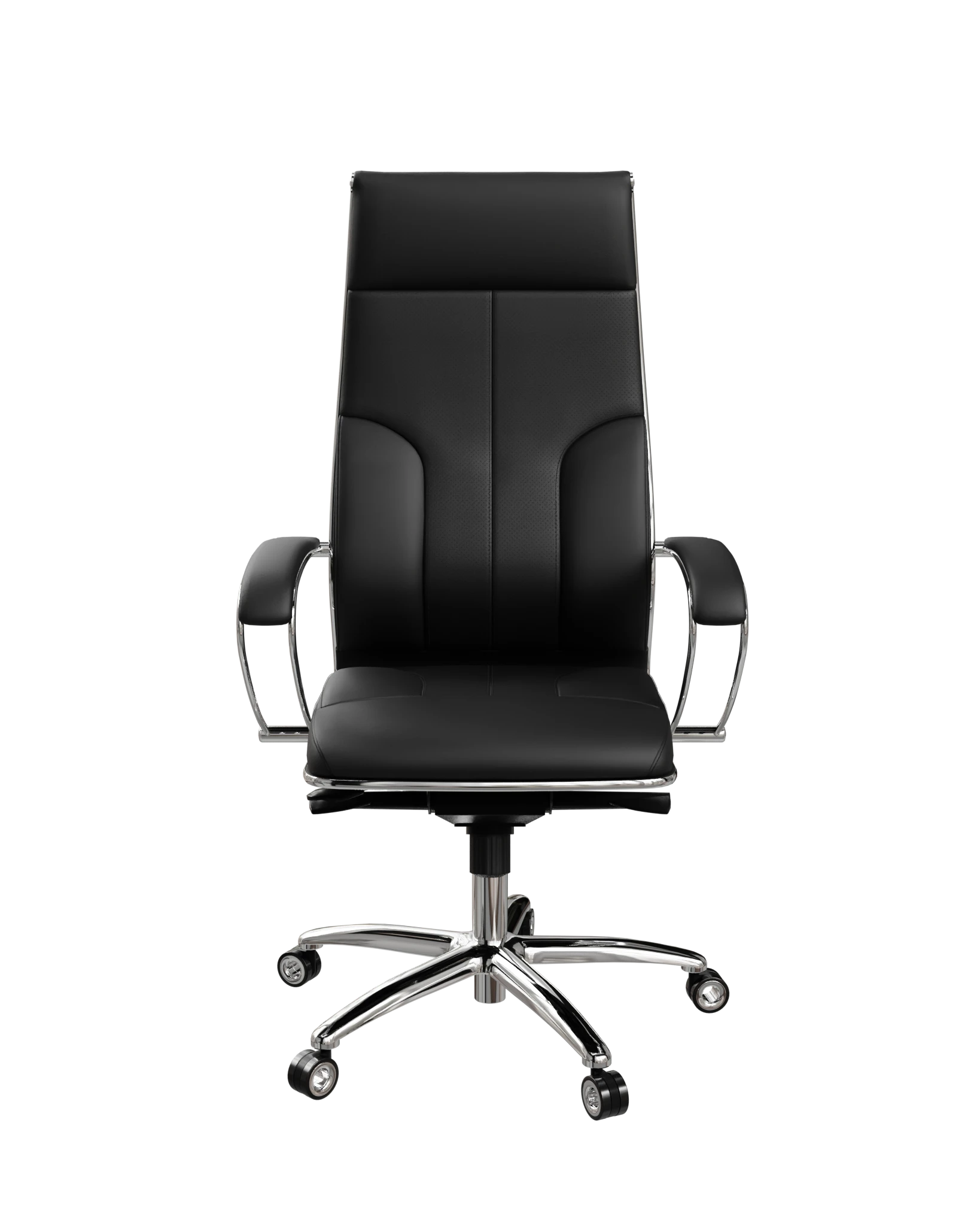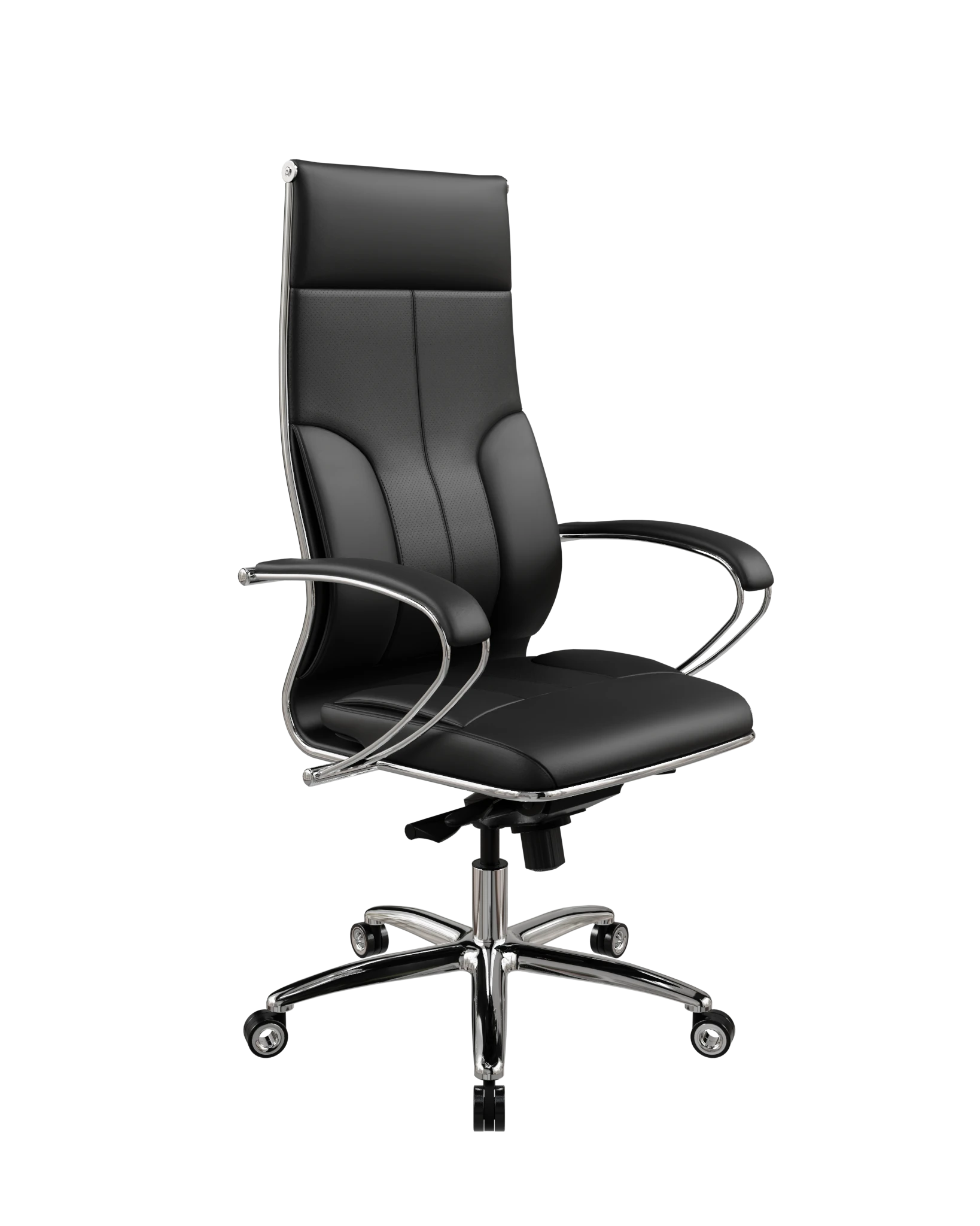 L1-11K Infinity — премиум-кресло с экокожей Infinity. Конфигурация 11K отличается от 11D моделью спинки и сиденья. Хромированный каркас, объёмное мягкое сиденье, классические стальные подлокотники с накладками.