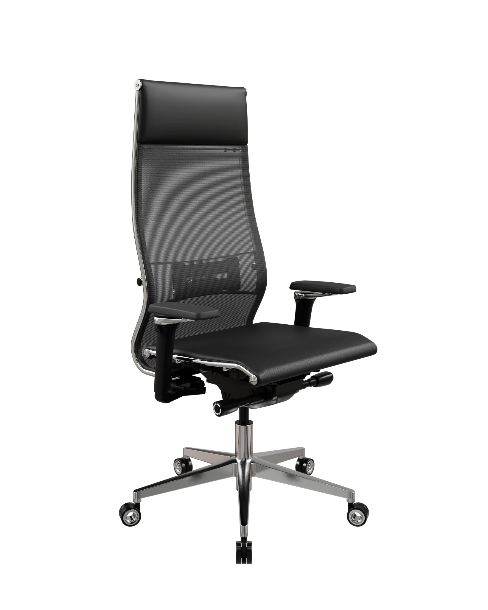 Для тех, кто хочет максимум комфорта и премиальные материалы. Сочетание сетки и кожи даёт вентиляцию и статусный вид одновременно. Нагрузка — до 150 кг.
