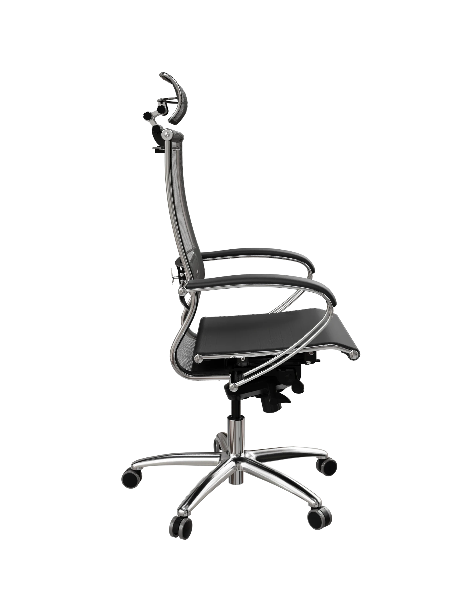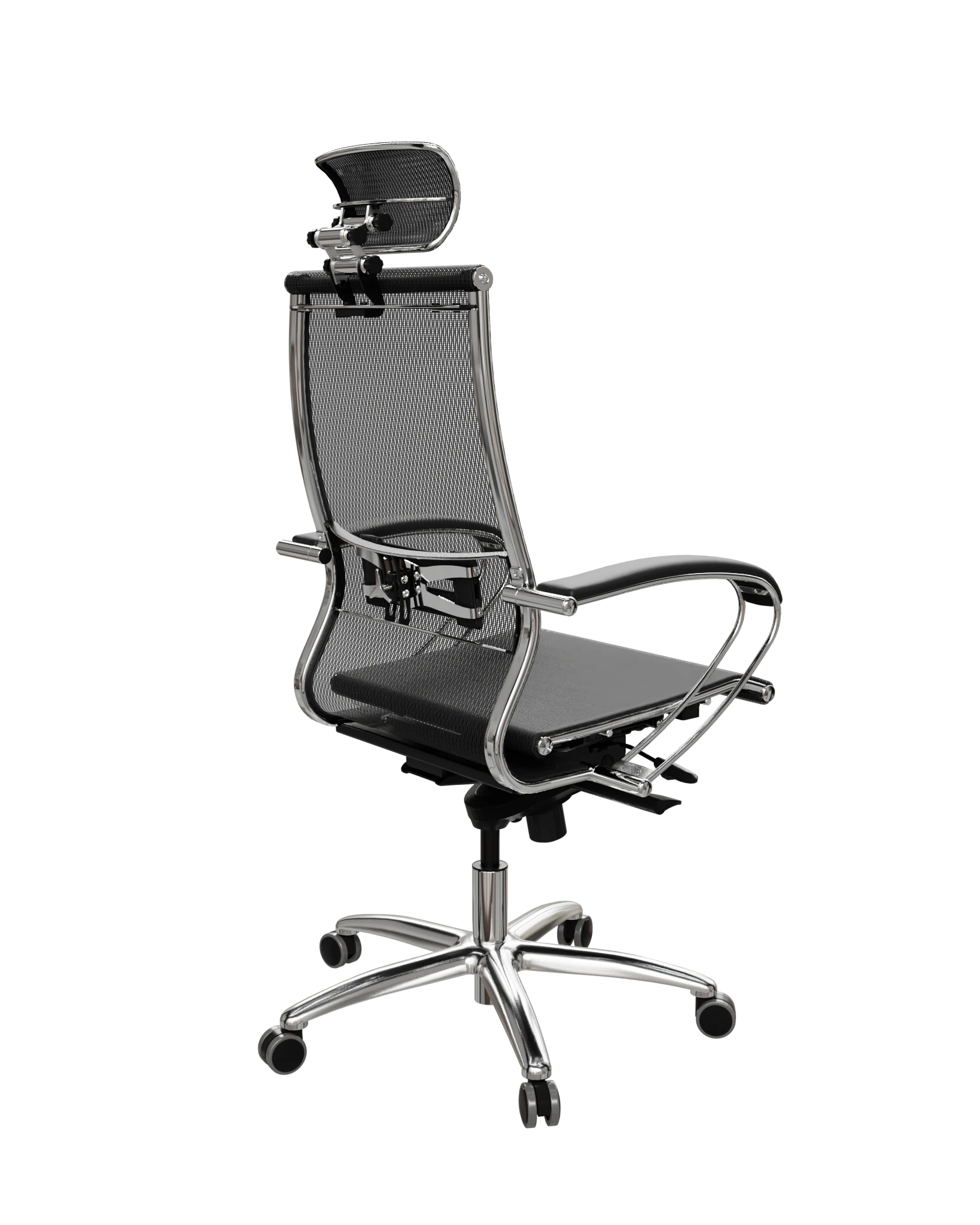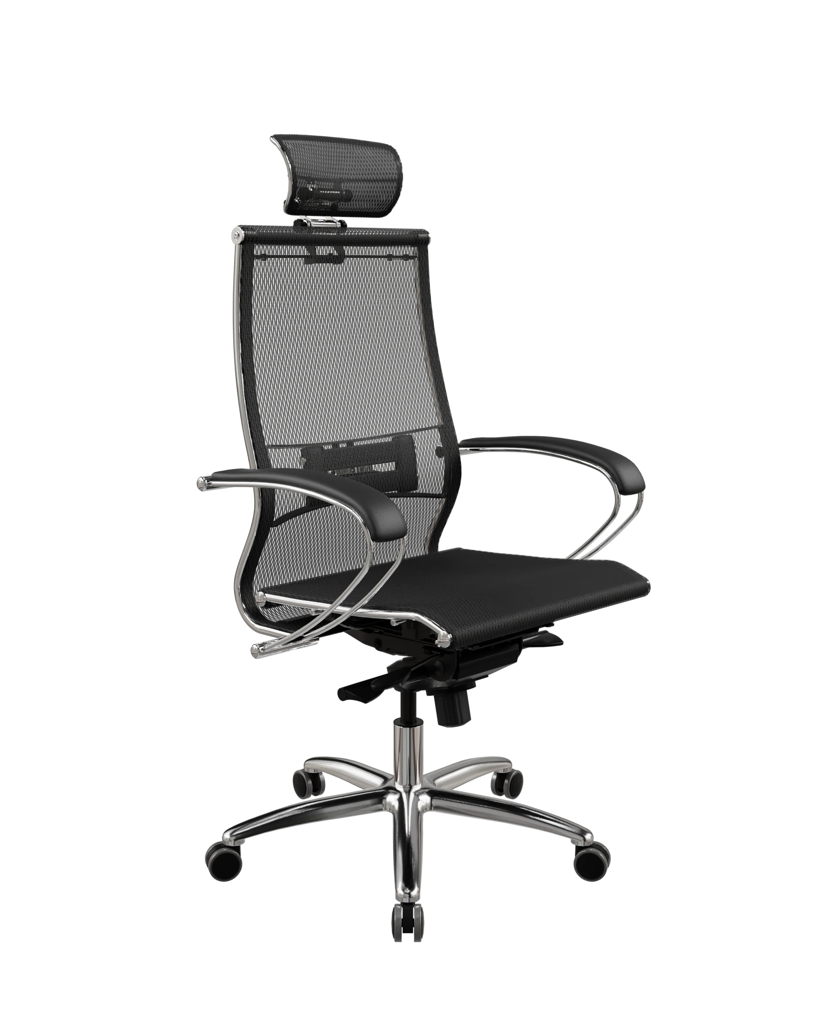 Обновлённая модификация: улучшенный дизайн спинки, 3D-подголовник, двухзонная поясничная поддержка. Синхромеханизм MultiBlock, хромированная крестовина. Нагрузка — до 150 кг.